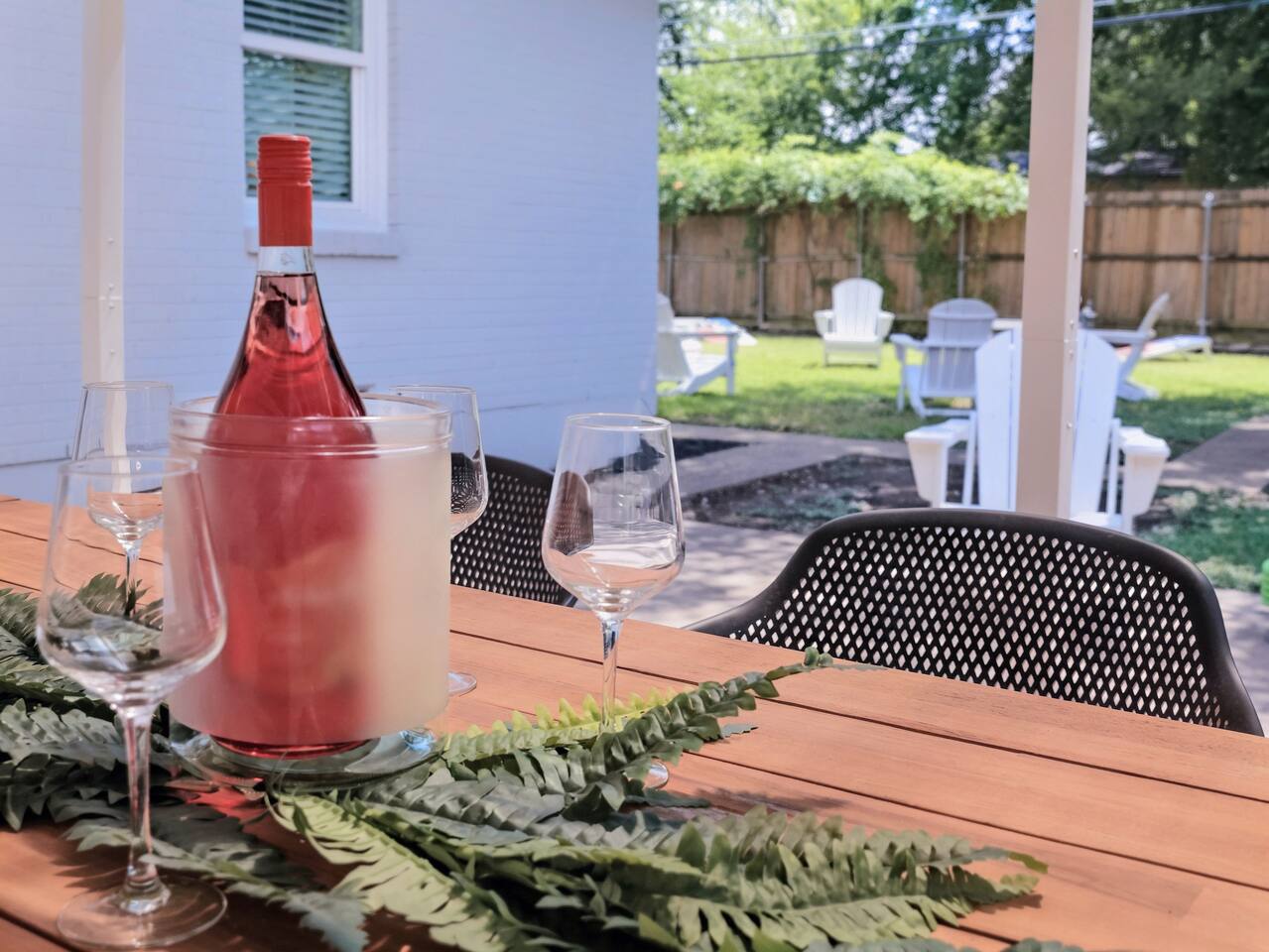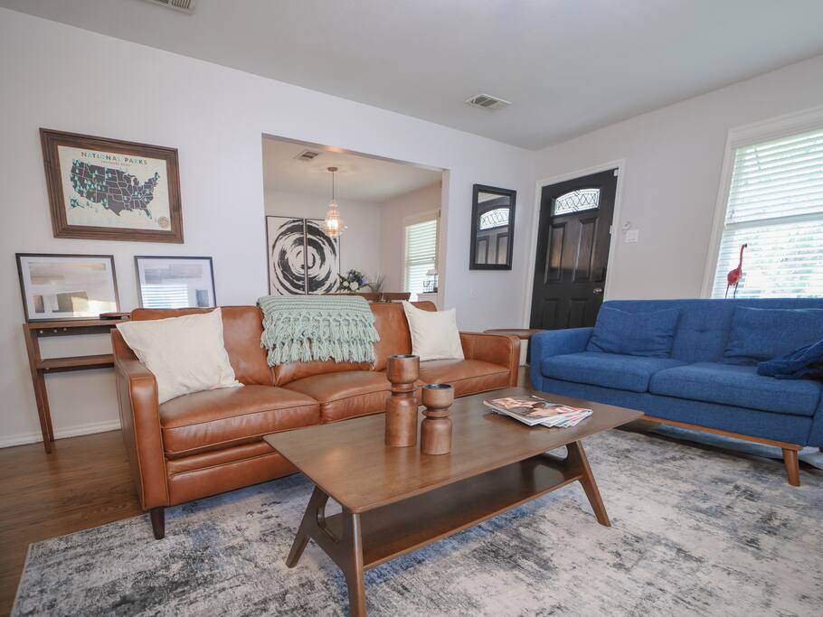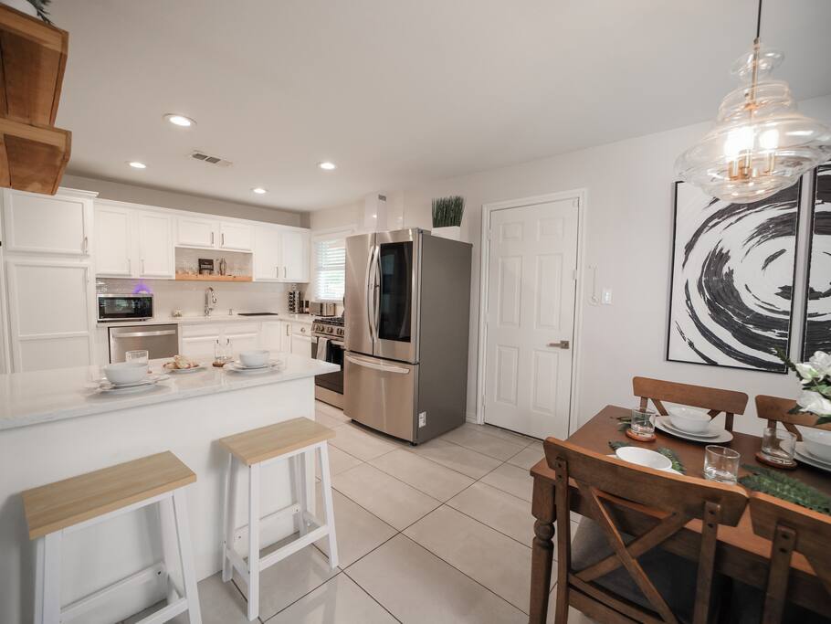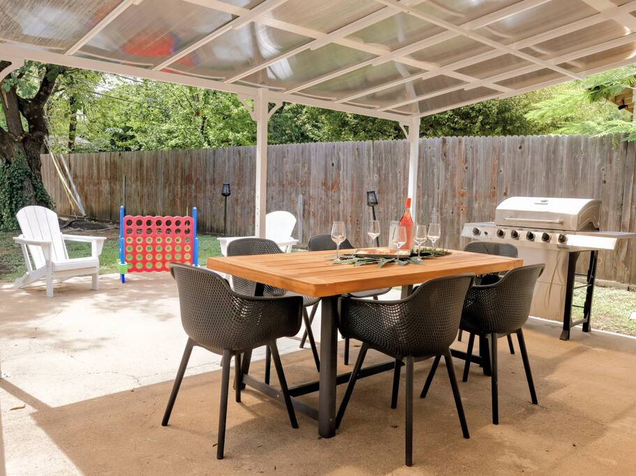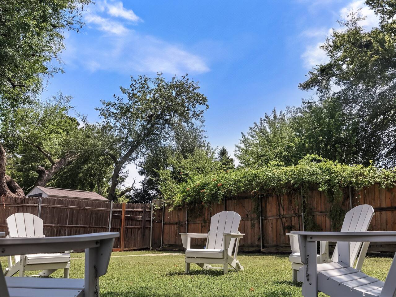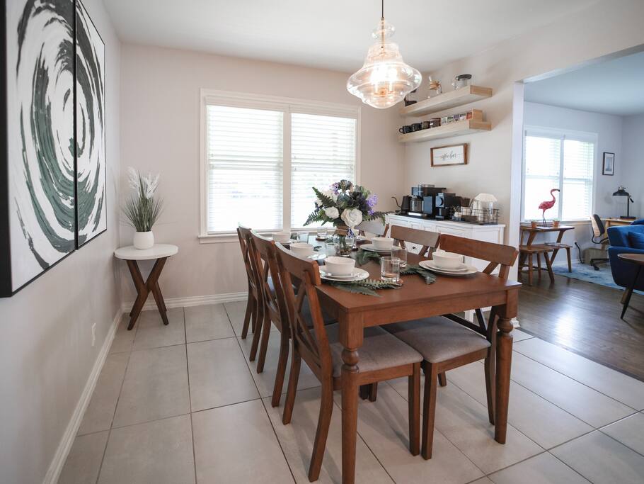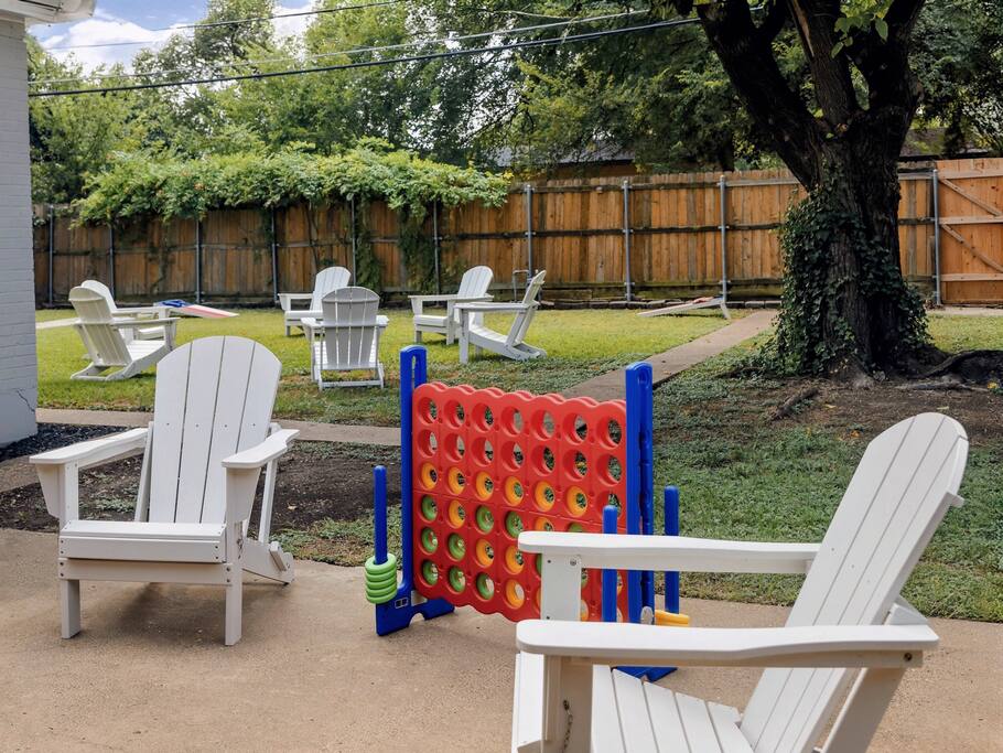 🛏️ The Space Flamingo Lane House is a renovated 3-bedroom, 2-bath retreat with 1,200 sq ft of bright, thoughtfully designed living space. With modern updates, family-friendly touches, and year-round comfort, it’s the perfect balance of shared areas and private retreats. • Primary bedroom with queen bed, ensuite bathroom, Smart TV, and ample closet space • Second bedroom with queen bed, twin trundle, folding cradle, and high chair for little ones • Third bedroom with queen bed, twin trundle, and Smart TV • Two full bathrooms — one with a walk-in shower, the other with a bathtub/shower combo, stocked with towels and toiletries • Open living area with spacious sofa, comfortable seating, large windows for natural light, and cozy evening lighting • Dining area flows seamlessly into the living room and kitchen, perfect for meals or games • Washer and dryer located in the garage ⸻ 🧺 Living & Entertainment Areas Spaces designed for relaxation and connection, so you can unwind together or enjoy private downtime. • 75” Smart TV in the living room plus 42” Smart TVs in each bedroom • Latest-generation TVs with free content and Guest Mode for Netflix, Disney+, Prime Video, and more • Comfortable sofa and chairs for lounging or movie nights • Dedicated dining space for meals, games, or conversation ⸻ 🖥️ Dedicated Workspace A fully equipped setup makes it easy to work or study while away. • Desk and ergonomic chair in a quiet, well-lit space • 4K USB-C monitor with power pass-through for one-wire laptop connection • Wired mouse and keyboard connected to the monitor — no Bluetooth or driver hassle • AirPrint-enabled printer in the garage for easy printing from modern devices • Plenty of outlets and surge-protected power strip for all devices ⸻ 🍳 Fully Equipped Kitchen Cook with ease or enjoy coffeehouse-level mornings right at home. • Stainless steel appliances: refrigerator, oven, microwave, dishwasher, smooth-top range • Farmhouse sink with pull-down faucet • Coffee station with drip machine, French press, Chemex, kettle, and mugs • Coffee and tea provided, including beans from Dallas’ local favorite Cultivar Coffee • Cookware, dinnerware, and utensils fully stocked for group meals • Dining table connected to the kitchen, ideal for casual snacks or sit-down dinners • Ample counter space for multiple people to cook together ⸻ 💦 Outdoor Area Your private backyard retreat, perfect for both sunny days and relaxing evenings. • Pergola with outdoor dining table and 6 chairs • Propane grill for easy cookouts • Eight Adirondack chairs for lounging or evening conversation • Cozy yet functional layout offering both comfort and privacy ⸻ 🚲 Fitness Equipment Stay active with both indoor workouts and nearby outdoor adventures. • Peloton bike in the garage with complimentary two-month app trial • Yoga mat for stretching, yoga, or floor workouts • Garage space with room for bodyweight training • White Rock Lake trails just 5 minutes away for walking, jogging, or biking • Kayak, paddleboard, and canoe rentals at White Rock Paddle Co. on the lake ⸻ 🔒 Security and Amenities Peace of mind and comfort built in. • Exterior security cameras (front entry and backyard only, no interior cameras) • Motion-activated flood lights for safe night access • Monitored security system with battery backup (optional to use) • Deadbolts and drop-in locks on all exterior doors • Smoke detectors, carbon monoxide detectors, and fire extinguishers installed throughout • Quiet, family-friendly residential area close to Dallas’ top attractions ⸻ 📍 Prime Location A rare walkable pocket of Dallas with plenty to explore nearby. • White Rock Lake just 5 minutes away with scenic trails • Supermarket two blocks away for essentials without needing the car • Coffee shops, casual dining, and parks all within a short stroll • 15 minutes to Downtown Dallas, Deep Ellum, and the Dallas Arboretum